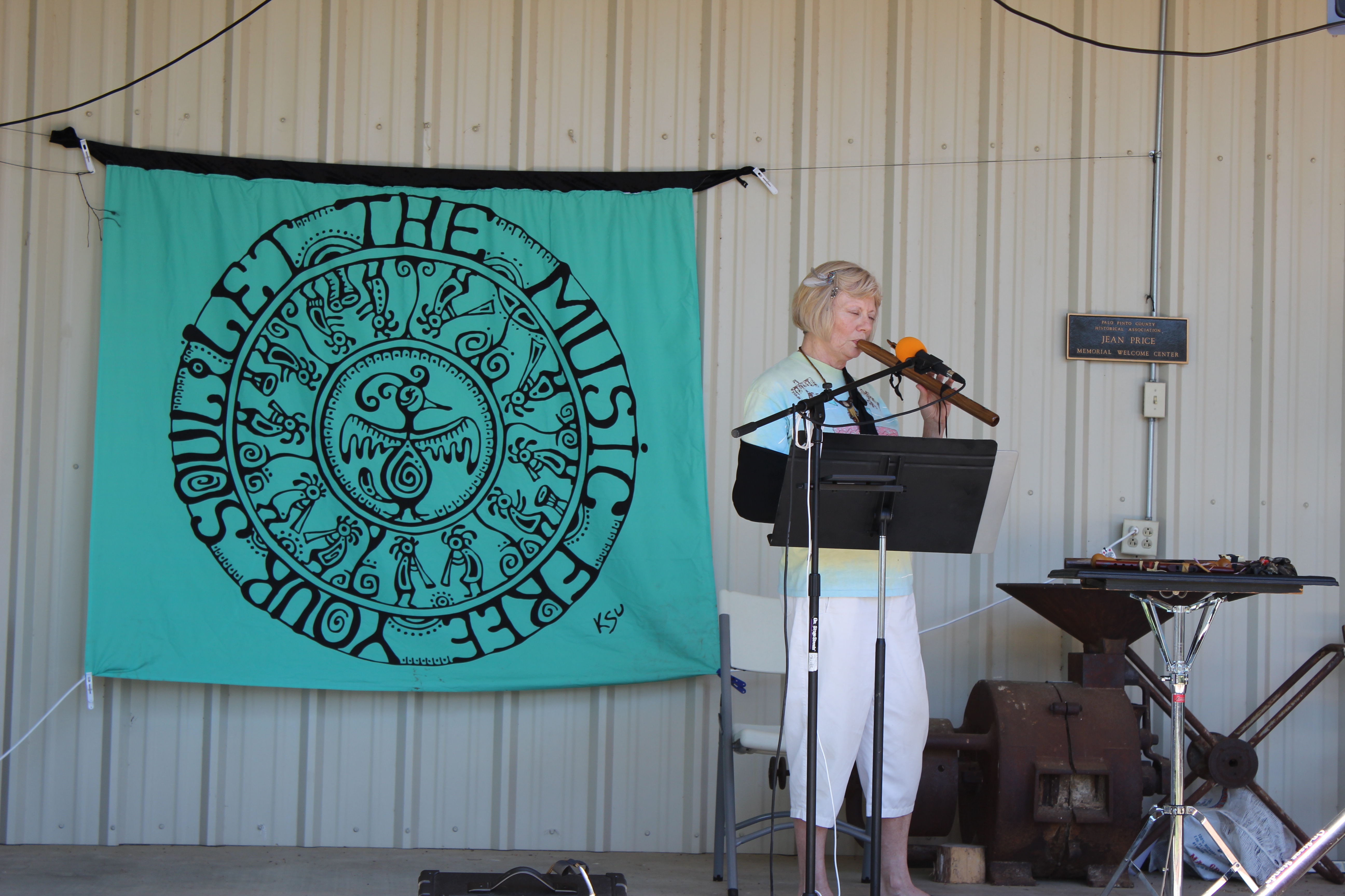 The Palo Pinto Festival featured a lineup of award winning and widely traveled musicians well versed in the instrument’s traditions. Palo Pinto native Sandy Horton was one such musician. Despite having an arm restrained by a black sling, she played her flutes gracefully, pairing each original song with an original poem.